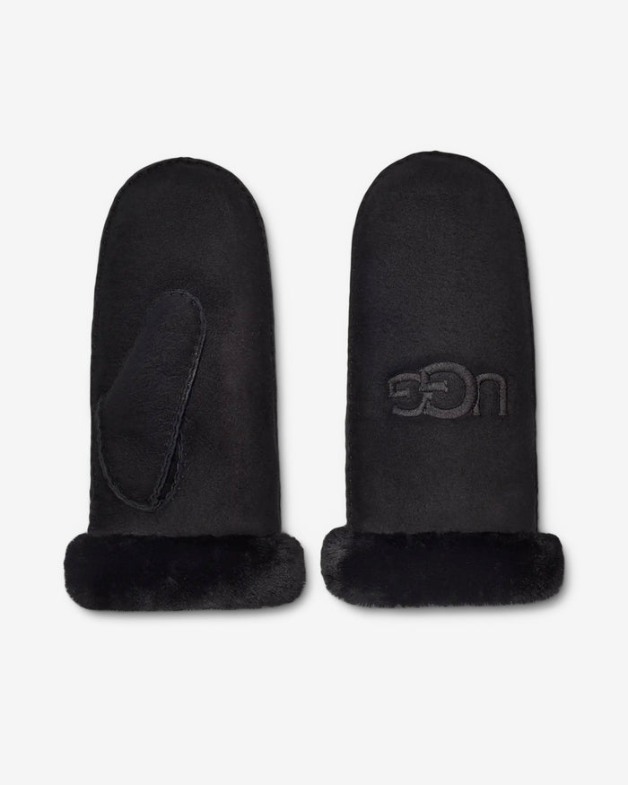 W SHEEPSKIN EMBROIDER MITTEN - BLACK