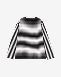 The Women's L/S Ezra T-Shirt is made in a loose fit from a striped, midweight cotton jersey. Graphic embroidery appears on the chest.